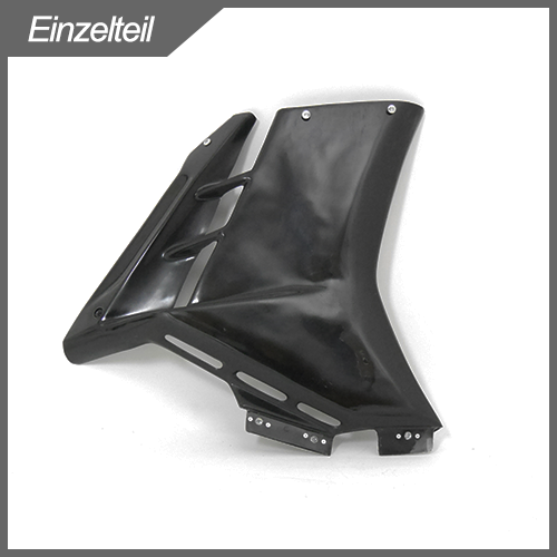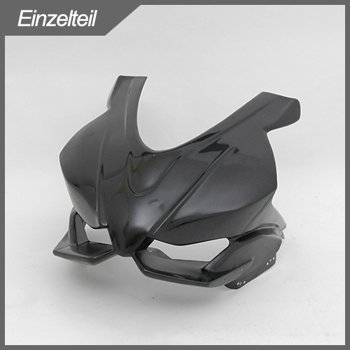 Front-Verkleidung komplett aus gewebtem GFK mit schwarzem Gelcoat-Finish inkl. vormontierten Dzus-Panex Schnellverschlüssen. Alle Befestigungspunkte sind zusätzlich mit Kohle-Kevlar-Gewebe verstärkt, jedoch nicht vorgebohrt. Das Gewicht ist mit Carbon vergleichbar. Die Teile sind nicht grundiert oder lackiert.