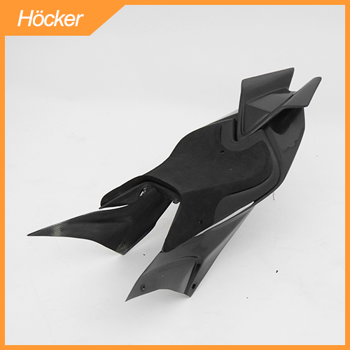 Höcker komplett aus gewebtem GFK mit schwarzem Gelcoat-Finish inkl. vormontierten Dzus-Panex Schnellverschlüssen. Beinhaltet ein Standard-Polster mit einer Höhe von 15 mm. Alle Befestigungspunkte sind zusätzlich mit Kohle-Kevlar-Gewebe verstärkt, jedoch nicht vorgebohrt. Das Gewicht ist mit Carbon vergleichbar. Die Teile sind nicht grundiert oder lackiert.