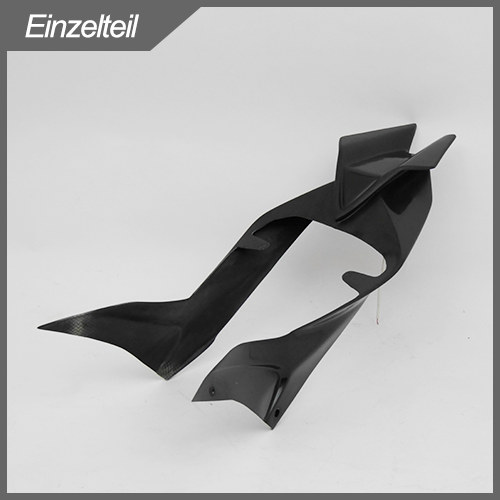 Leichtes Verkleidungsteil aus gewebtem GFK mit schwarzem Gelcoat-Finish inkl. vormontierten Schnellverschlüssen. Alle Befestigungspunkte sind zusätzlich mit Kohle-Kevlar-Gewebe verstärkt, jedoch nicht vorgebohrt. Das Gewicht ist mit Carbon vergleichbar. Die Teile sind nicht grundiert oder lackiert.