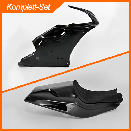 Leichtes Komplett-Set aus gewebter GFK-Matte mit schwarzem Deckschichtharz (Gelcoat) und vormontierten Dzus-Panex Schnellverschlüssen. Alle Befestigungspunkte sind zusätzlich mit Kohle-Kevlar-Gewebe verstärkt, jedoch nicht vorgebohrt. Das Gewicht ist mit Carbon vergleichbar. Die Teile sind nicht grundiert oder lackiert.