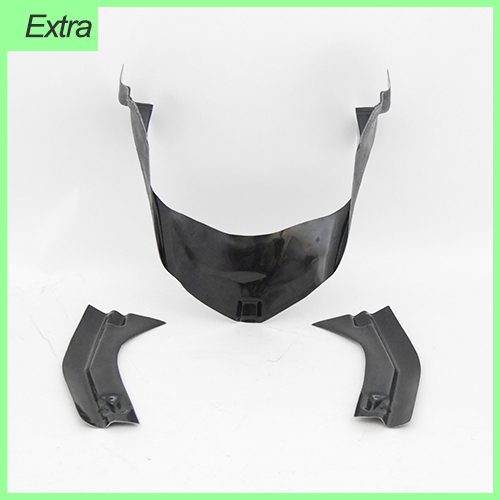 3-teiliges Kühler-Luftleitblech aus gewebter GFK-Matte mit schwarzem Deckschichtharz (Gelcoat), inkl. vormontierten Dzus-Panex Schnellverschlüssen. Die Befestigungspunkte sind zusätzlich mit Kohle-Kevlar-Gewebe verstärkt, jedoch nicht vorgebohrt. Das Gewicht ist mit Carbon vergleichbar. Die Teile sind nicht grundiert oder lackiert.