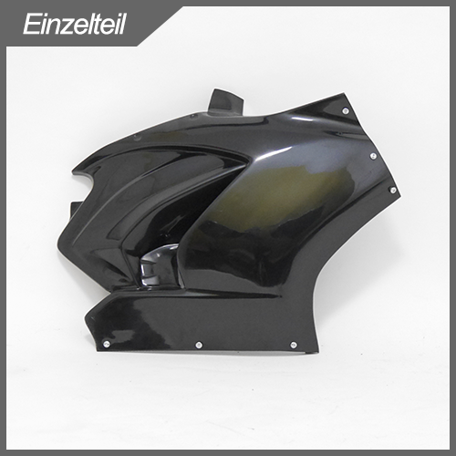 Leichtes Verkleidungsteil aus gewebter GFK-Matte mit schwarzem Deckschichtharz (Gelcoat), inkl. vormontierten Dzus-Panex Schnellverschlüssen. Die Befestigungspunkte sind zusätzlich mit Kohle-Kevlar-Gewebe verstärkt, jedoch nicht vorgebohrt. Das Gewicht ist mit Carbon vergleichbar. Die Teile sind nicht grundiert oder lackiert.