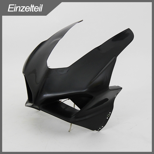 Leichtes Frontverkleidungs-Set aus gewebter GFK-Matte mit schwarzem Deckschichtharz (Gelcoat), inkl. vormontierten Dzus-Panex Schnellverschlüssen. Die Befestigungspunkte sind zusätzlich mit Kohle-Kevlar-Gewebe verstärkt, jedoch nicht vorgebohrt. Das Gewicht ist mit Carbon vergleichbar. Die Teile sind nicht grundiert oder lackiert.