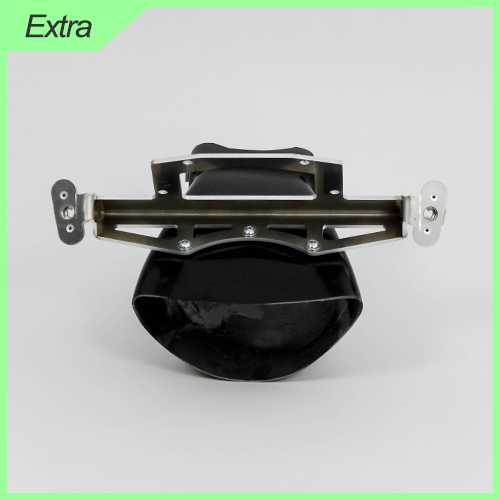 Racing-Luftkanal lang in Premium-Qualität aus gewebtem GFK-Gewebe mit schwarzem Deckschichtharz (nicht lackiert), inklusive Befestigung für Lenkungsdämpfer, mit passendem Front-Verkleidungshalter aus Aluminium für ein ADU-Dashboard.