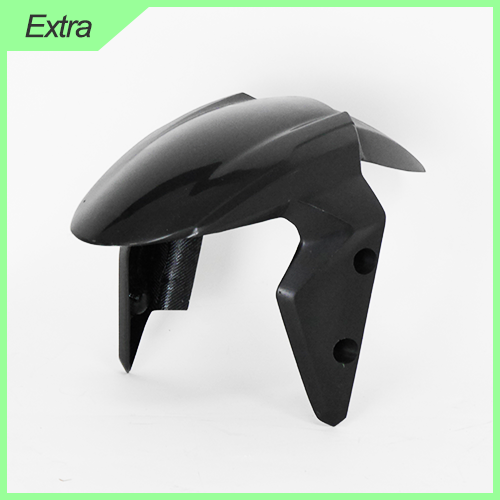 Leichter Vorderrad-Kotflügel aus gewebter GFK-Matte mit schwarzem Deckschichtharz (Gelcoat). Alle Befestigungspunkte sind zusätzlich mit Kohle-Kevlar-Gewebe verstärkt, jedoch nicht vorgebohrt. Das Gewicht ist mit Carbon vergleichbar. Die Teile sind nicht grundiert oder lackiert.
